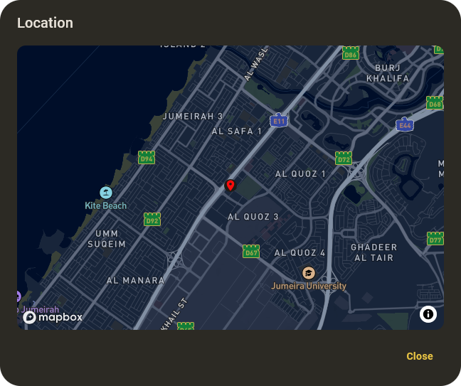 View Locationon an alert card orView Location on Mapin the history table. - A map will open, displaying the exact location of the alert with a marker.