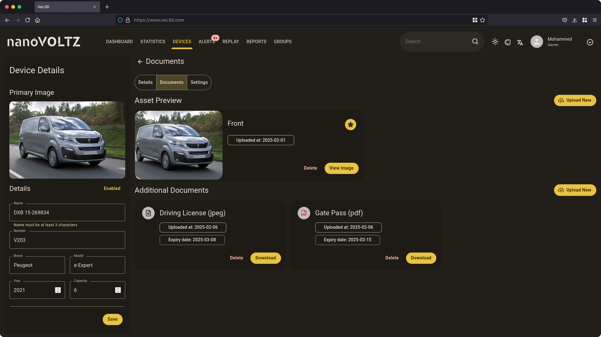 The Device Documents section enables users to store, manage, and organize files associated with their devices. This includes images used for identification and documents related to compliance and general asset management. Users can upload, preview, and manage these files seamlessly through the interface.